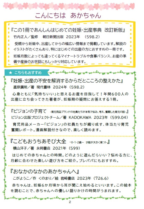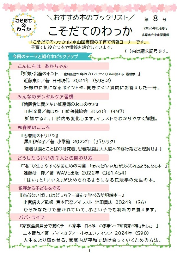 ※ブックリストはこちらからダウンロードできます。両面印刷すると冊子のようになります。こそだてのわっかブックリスト202602(PDF:944KB)
