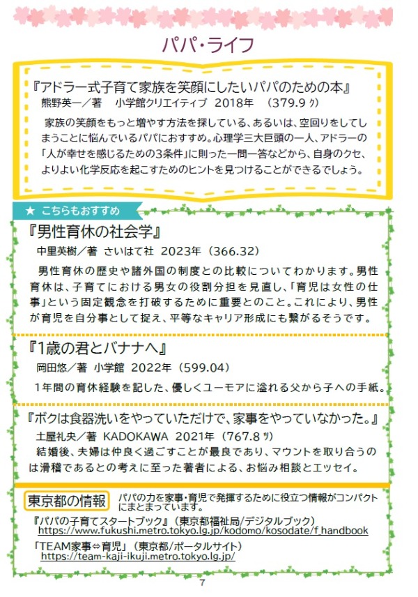 子育ての悩みや疑問の道しるべになる図書や雑誌を紹介しています。永山図書館周辺の子育てに関する施設や相談窓口などの情報も紹介しています。